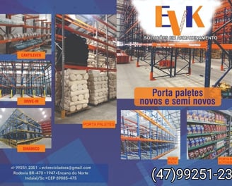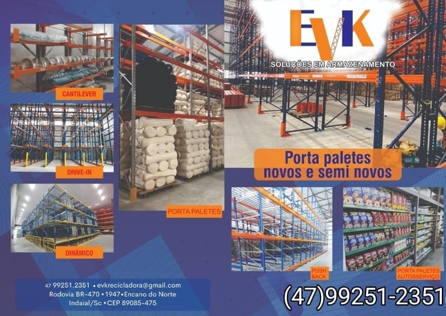 Especializada em porta pallets para armazenamento, logística e movimentações de cargas novos ou usados e aramados.